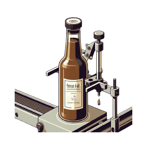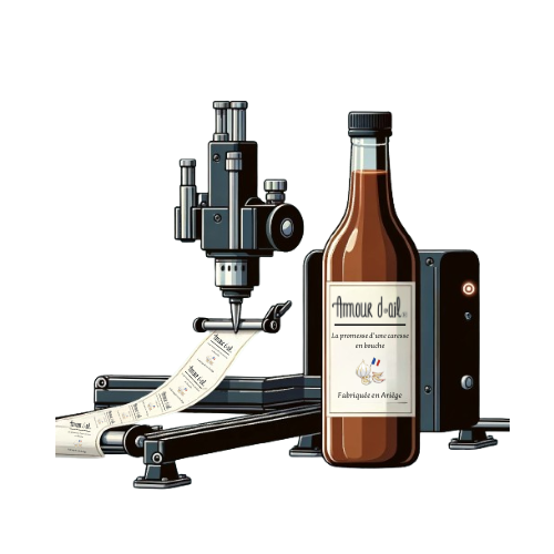 L’étape de l’étiquetage des bouteilles Amour d’ail transforme chaque bouteille en une œuvre d’art. Avec soin et précision, une étiquette élégante est appliquée, conférant au produit son identité visuelle distinctive et attrayante